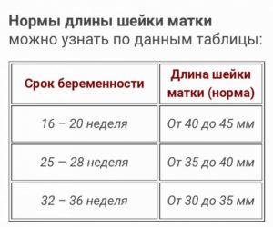 Каждый период беременности характеризуется различным числовым значением нормальной длины шейки матки. Колебания параметров представлены в таблице.