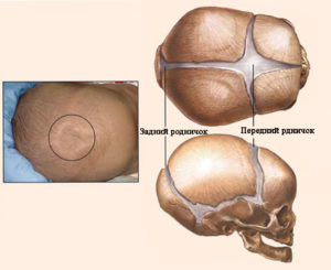 У каждого ребёнка есть несколько участков на головке, не закрытых черепными костями.