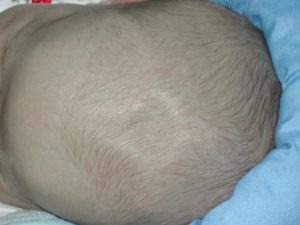- Краниостенозом. Патология приводит к зарастанию черепных костей еще при внутриутробном развитии плода. При рождении естественным путем, голова ребенка деформируется, в результате чего может травмироваться головной мозг.